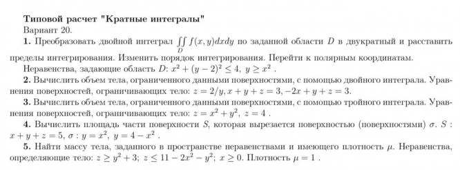 Типовой расчет по математическому анализу №1, 5 задач: "Кратные интегралы", зачтено