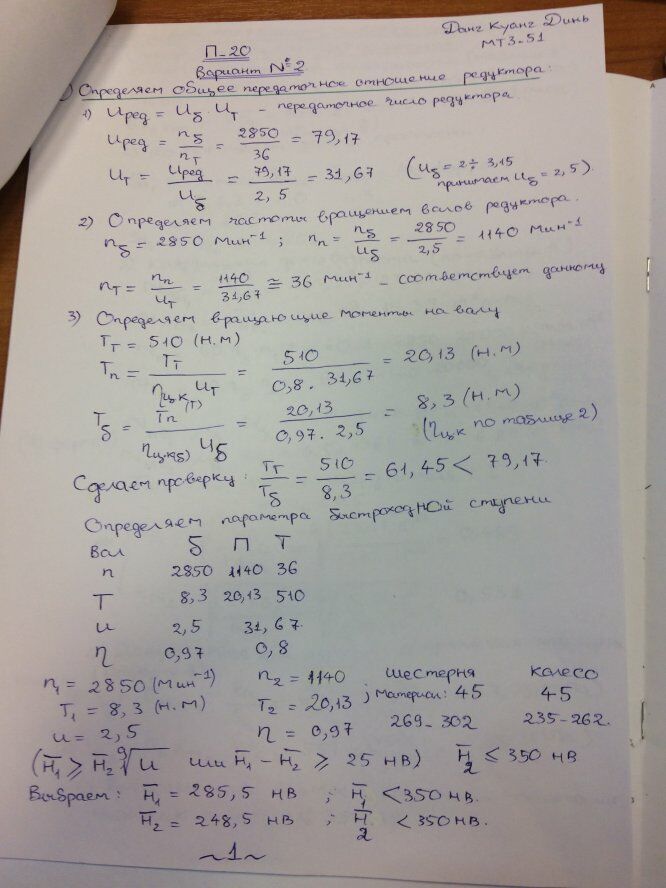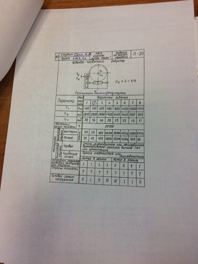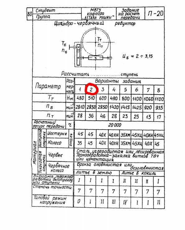 ДЗ П-20: Расчет передачи вариант 2
