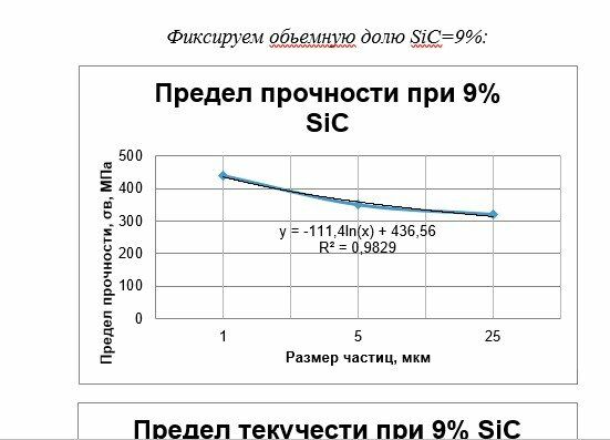 Для выбора оптимального размера и объемной доли частиц карбида кремния в композиционном материале построим однофакторные модели. Для этого необходимо поочередно зафиксировать один из факторов влияния на постоянном уровне.
