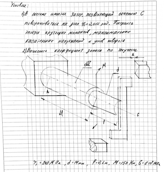 Типовой расчет по сопротивлению материалов №2 "Кручение", задача № 2.3, зачтено