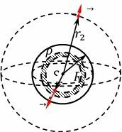 Сплошной непроводящий шар радиусом R обладает зарядом q, который равномерно распределен по объему. Определить напряженность поля в точках, отстоящих от центра на расстояниях r1 < R и r2 > R.