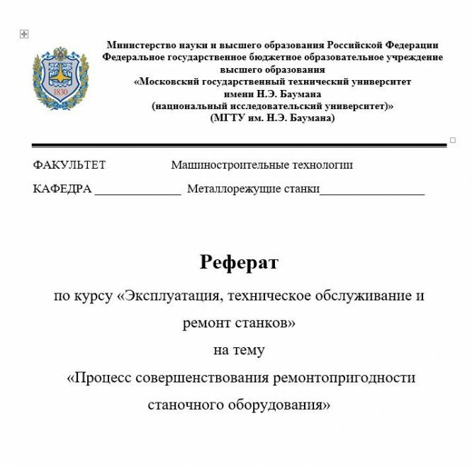 ДЗ: Процесс совершенствования ремонтопригодности станочного оборудования