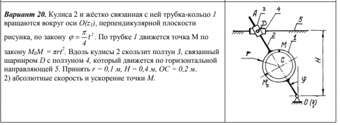 ДЗ 3: Кинематика сложного движения точки вариант 20