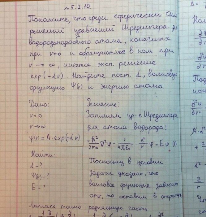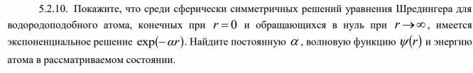 5.2.10. Покажите, что среди сферически симметричных решений уравнения Шредингера для водородоподобного атома, конечных при r 0 и обращающихся в нуль при r , имеется экспоненциальное решение expαr . Найдите постоянную , волновую функцию r и энергию атома в рассматриваемом состоянии.