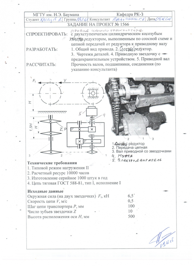 Для студентов МГТУ им. Н.Э.Баумана по предмету Детали машин (ДМ)Привод цепного транспортераПривод цепного транспортера