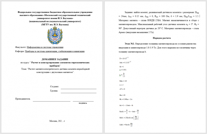 Для студентов МГТУ им. Н.Э.Баумана по предмету Расчет и конструирование элементов гироскопических приборовРасчет магнитоэлектрического датчика момента неразборной конструкции с двухосным магнитом (D=24 mm)Расчет магнитоэлектрического датчика момента неразборной конструкции с двухосным магнитом (D=24 mm)