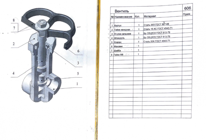 Для студентов РУТ (МИИТ) по предмету Инженерная графикаСборка вентиляСборка вентиля