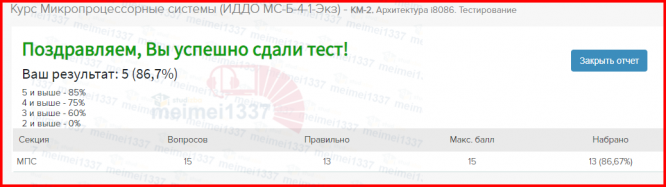 Для студентов ИДДО НИУ «МЭИ» по предмету Микропроцессорные системы (МПС)КМ-2. Архитектура i8086. Тестирование 87%КМ-2. Архитектура i8086. Тестирование 87%