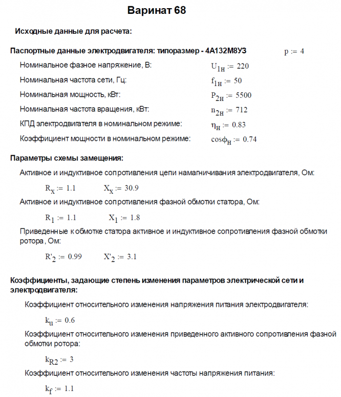 ДЗ 1: Расчет характеристик трехфазного асинхронного двигателя вариант 68