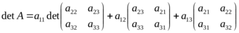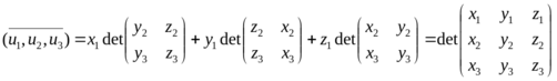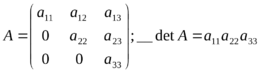 | 5. Скалярное произведение векторов. Скалярное произведение векторов, лежащих на одной прямой. Вывод равенства (u, v) = (PrLu, v), где вектор v лежит на прямой L. Свойства линейности скалярного пр-я. Выражение скалярного пр-я в ортонормированном базисе. Длины векторов и углы между векторами. Скалярным произведением двух ненулевых векторов u и v, отложенных от одной точки, называется произведение их длин на cos угла между ними. Если один из вект. нулевой,то (u,0)=θ. Если векторы перпендикулярны друг к другу, то их скалярное пр-е равно 0. (u, v) = |u||v|cosφ. Свойства: 1) Симметричность: (u, v) = (v, u); 2) Оба вектора лежат на одной прямой: . В этом случае скалярное пр-е равно произведению координат векторов: (u, v) = ab. Док-во: Пусть a>0 и b>0. Здесь u и v сонаправлены с l: (u,v)=|u||v|cos0 = ab; Если a>0, b<0, тогда (u,v) = |u||v|cos180˚=a(-b)(-1)=ab. 3) (u, v) = (PrLu, v). Док-во: Пусть , b≥0. PrLu= u’, u' = b'e; (u, v) = |u||v|cosφ = |u| cosφ b; |u|cosφ = b’; (u, v) = b’*b=(u’, v) = (PrLu, v). (Использовано св-во 2). 4) (u1+u2, v) = (u1,v) + (u2,v); (λu,v) = λ(u,v), λ из R. Док-во: Имеем (u1+u2, v)= (PrL(u1+u2), v) = (PrLu1+PrLu2, v) = = (PrLu1,v)+ (PrLu2,v) = (u1,v) + (u2,v). Ч.т.д. (a+b)c = ac + bc Скалярное пр-е векторов есть сумма пр-й их одноименных координат. u = x1i+ y1j+ z1k; v = x2i+ y2j+ z2k; (u,v) = x1x2+y1y2+z1z2. Док-во: (u,v) = (x1i+ y1j+ z1k, x2i+ y2j+ z2k) = x1x2 (i,i)+ +x1y2(i,j)+….+z1z2 (k,k); (i,i) =(j,j) =(k,k) = 1; (i,j)= (j,k)= (i,k)= 0. Имеем: (u,v) = x1x2+y1y2+z1z2. Ч.т.д. Вычисление длины векторов и угла между ними: 1) u = xi+ yj+ zk; (u,u) = |u|2; |u| = √(u,u). 2) u = x1i+ y1j+ z1k; v = x2i+ y2j+ z2k | 6. Векторное произведение векторов, его антисимметричность, линейность по каждому из векторов. Выражение через координаты векторов в ортонормированном базисе. Векторным произведением двух неколлинеарных векторов называется вектор w со след. св-вами: w = u x v 1) |w| - численно равняется площади пар-ма. 2) w ортогонален к u и к v. 3) u, v , w – правая. Если u и v коллинеарны, то по опред. векторное пр-е равно нулевому вектору 0. Свойства векторного пр-я: 1) u x v = -v x u (антисимметричность) 2) (u1+u2) x v = u1 x v + u2 x v; (λu) x v = (u x v) 3) i, j, k – правая. Тогда i x j=k; j x k=i; k x i=j. (Свойство циклической перестановки). 4) u = x1i+ y1j+ z1k; v = x2i+ y2j+ z2k; u x v= (x1i+ y1j+ z1k) x ( x2i+ y2j+ z2k)= x1x2 (i x i)+ +x1y2(i x j)+….+z1z2 (k x k) = (x1y2 – y1x2)k +… = | 7. Определение матриц второго и третьего порядка. Смешанное произведение тройки вектров; выражение через координаты векторов в ортонормированном базисе. Связь с объемом параллелепипеда. Смешанное произведение компланарной тройки векторов. Матрицей второго порядка называют таблицу, сост. из чисел: Определителем (детерминантом) матрицы называют det A= a11a22 - a12a21. Свойства определителей: det A=0 если 1) один из столбцов (строк) получ. из другого умножением на нек-рое число; 2) если есть нулевая строка (столбец); 3) если одна из строк является лин. комбинацией остальных. Матрицей третьего порядка называется таблица чисел: det A=a11a22a33+a13a21a32+a12a23a31-a13a22a31-a11a23a32- -a12a21a33; det E= 1; Смешанным произведением тройки векторов называется число (u1, u2 x u3). (u1,u2,u3) – обознач. 1. Теорема: u1= x1i+ y1j+ z1k; u2= x2i+ y2j+ z2k; u3= x3i+ y3j+ z3k. Док-во: (u1,u2,u3) = (u1, u2 x u3); по определению det. 2. Пусть u1, u2, u3 – компланарны. Тогда (u1,u2,u3) = 0, т.к. u2 x u3 – перпендикулярен u1. Теорема: 3. Для некомпланарной тройки (u1,u2,u3) = +-V, где V – объем пар-да, постр. на этих векторах. Док-во: V – пл.осн.*Н = пл.осн.*|u3|*cosα= |u1xu2|*|u3|*cosα= = (u3, u1xu2) = (u3, u1,u2). Из опр. смеш. пр-я, при перестановке 2 векторов пр-е меняет знак: (u1,u2,u3) = (u3, u1,u2). Ч.т.д. | 8. Координаты точек на плоскости и в пространстве. Расстояние между точками, углы между отрезками, площадь пар-ма, объем пар-ма. OM = xi + yj + zk; M = (x, y, z) OM = xi + yj; M = (x, y) 1) Вектор с заданными концам