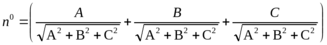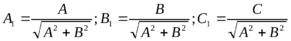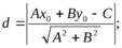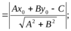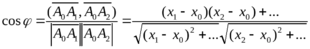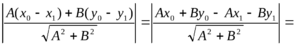 | 9. Деление отрезка в данном отношении. A1A2; P1/P2; P1>0; P2>0; A1B/A2B=P1/P2; Решение: OB= OA1+A1B= OA1 + A1A2 + P1/(P1+P2)= = OA1 + P1/(P1+P2)*(OA2-OA1) = B = (x*,y*,z*); | 10. Общее уравнение прямой на плоскости; нормаль к прямой и направляющий вектор. Общее уравнение: Ax+By = C; (A2+B2 ≠ 0) Лемма: |e|=1; PrПu = (u, e)*e. (u,e) – координаты вектора пр-ции u на e, по отнош. к базису e. ПрПu = te; t = |u| cosφ= |u||e|cosφ= (u, e) Ч.т.д. Вывод ур-я: P = (x, y); OP = ce; P € L => PrLOP=OP0 (OP,e)=ce (OP, e) =c; OP = xi+yj; e= Ax+By; => Ax + By = C; Обе части ур-я можно заменить на константу. 1. Нормалью к L называется любой ненулевой вектор, который перпенд. к L. Из вывода общего ур-я вытекает, что нормаль n = (A,B). Нормаль определ. с точностью до умножения на ненулевой скаляр: (λA, λB), λ ≠ 0. |n0|=1 –единичная нормаль 2. Направляющий вектор – любой ненулевой вектор, параллельный с L: l = (-B, A). Достаточно показать, что l перпенд. к n: (l, n) = A(-B) + BA = 0 Направляющий вектор можно умножить на λ ≠ 0. | 11. Уравнение прямой, выраженное через угловой коэффициент. Параметрическое и каноническое ур-я прямой. Ур-е прямой в отрезках. Ур-е прямой, проходящей через 2 точки. 1) К называют угловым коэффициентом. Геометр. смысл числа к: A>0, B<0; k = A/-B = tg φ (острый угол); Если А и В – числа одного знака, то угол тупой. В обоих случаях k = tgφ, где φ – угол, на котор. нужно повернуть положит. полуось х против часовой стрелки, пока поверн. полуось не станет параллельна L. 2) Параметрическое ур-е прямой: Возьмем на плос-ти произв. точку А0 = (x0,y0), и любой ненулевой вектор l = (α, β); α2+β2 ≠ 0 Возьмем прямую, проходящую через A0, и для которой l – направляющ. вектор: OA = OA0 + A0A A0A = tl, t – любое из R OA = OA0 +tl (парам. ур-е в векторной форме) Парам.ур-е в координатной форме. 3) Каноническое ур-е прямой: Пусть α ≠ 0 и β ≠ 0. Тогда выразим t: Получили каноническое ур-е прямой. 4) Уравнение прямой в отрезках. Пусть .Тогда ур-е прямой можно записать в виде . Чтобы доказать, покажем, что коорд. точек удовлетворяют ур-ю. 5) Ур-е прямой, проходящей через 2 точки: A1(x1,y1), A2(x2,y2). l = A1A2 = (x2-x1, y2-y1). Запишем канон. ур-е: В парам. форме: | 12. Расстояние от точки до прямой. 1) L задана общим ур-ем: Ax+By = C; (A2+B2 ≠ 0) A0 =(x0,y0) Найдем расстояние от A0 до L: d(A0, L). Возьмем произвольную A1=(x1,y1), A1 принад. L. A1A0 = (x0-x1, y0-y1). Найдем |( A1A0, n0)|. По опр. скалярного пр-я |A1A0||n0||cosφ| = | A1A0|| cosφ | = d В коорд. форме т.к. A1=(x1,y1) лежит на L, то ее коорд. удовл. ур-ю Ax+By = C 2) L задана общим ур-ем: Ax+By = C; (A2+B2 ≠ 0) Обе части поделим на Получ. ур-е – нормальное ур-е прямой: A1x+B1y=C1; d(A0, L): Берем норм. ур-е прямой и подставляем в лев. часть координаты точки. Получаем результат и берем его модуль. |