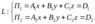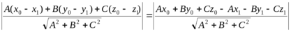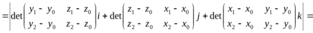| 13. Условия параллельности и перпендикулярности 2х прямых. L1:A1x+B1y=C1; L2:A2x+B2y=C2 1) Условие параллельности: n1=(A1,B1), n2=(A2,B2), n1||n2 – коллинеарны. Значит n2=λ n1: A2 = λA1, B2 = λB1; A2B1 – A1B2 = 0; Пусть обе прямые заданы ур-ем с угловым коэф.: L1: y = k1x + h1; L2: y = k2x + h2; L1||L2, если k1=k2 2) Условие перпендикулярности: L1 перп. L2, n1 перп. n2 A1A2 + B1B2 = 0 В общей форме: k1x-y=h1; k2x-y=h2; нормали (k1,-1), (k2, -1) ((k1,-1), (k2, -1)) = 0; k1k2 + 1 = 0 | 14. Общее уравнение плоскости; нормаль к плоскости. Уравнение в отрезках. Параметрические ур-я плоскости. Ур-е плос-ти, проходящей через 3 точки, не леж. на одной прямой. Расстояние от точки до плоскости. Общее уравнение: Ax+By+Cz = D; (A2+B2 +C2≠ 0) Нормалью к П называется любой перпендик. к П вектор. n = (A,B,C) 1. Уравнение в отрезках: Пусть П∩ОХ=(а,0,0), П∩ОY=(0,b,0), П∩ОZ=(0,0,c) Чтобы доказать, покажем, что коорд. точек удовлетворяют ур-ю. 2. Параметрические ур-я плоскости: Возьмем произв. A0=(x0,y0,z0) и пару неколлинеарн. n1(α1,β1,γ1) и n2 (α2,β2,γ2). Отложим n1 и n2 от A0 и построим П. OA0, OA, A0A; OA = OA0 + A0A. Возьмем n1 и n2 в кач-ве базиса в мн-ве всех векторов, отлож. от A0 и лежащих в П. A0A = t n1 + t n2 Выразим в координатной форме: 3. Плоскость по 3м точкам: A1(x1,y1,z1), A2(x2,y2,z2), A3(x3,y3,z3) A1A2, A1A3, A1A. Полученные 3 вектора компланарны: (A1A2, A1A3, A1A) = 0 4. Расстояние от точки до плоскости: П: Ax+By+Cz = D; (A2+B2+C2 ≠ 0) A0 =(x0,y0,z0) Найдем расстояние от A0 до П: d(A0, П). Возьмем произвольную A1=(x1,y1,z1), A1 принад. П. A1A0 = (x0-x1, y0-y1, z0-z1). Найдем |( A1A0, n0)|. По опр. скалярного пр-я |A1A0||n0||cosφ| = | A1A0|| cosφ | = d В коорд. форме т.к. A1=(x1,y1,z1)лежит на П,то ее коорд.удовл. ур-ю Ax+By+Сz = D | 15. Условия параллельности и перпендикулярности 2х плоскостей. 1. Параллельность: П1: A1x+B1y+C1z = D1; П2: A2x+B2y+C2z = D2 n1 = (A1,B1,C1), n2 = (A2,B2,C2) П1 | | П2 n1 | | n2; n2 =λ n1; A2=λA1; B2=λB1; C2=λC1 2-й признак коллинеарности: n1 х n2 =0; П1 || П2 2) Перпендикулярность: n1 перпенд. n2 => (n1, n2)=0 A1A2+B1B2+C1C2=0 | 16. Параметрические и канонические уравнения прямой в пространстве. Скрещивающиеся прямые; общий перпендикуляр к ним. 1. Параметрические уравнения: A0 = (x0,y0,z0); A = (x,y,z) – произв. точка; l = (α, β, γ) – направ. вектор OA = OA0+A0A OA = OA0+tl – парам. ур-е в векторной форме 2. Каноническое ур-е прямой: 3. Скрещивающиеся прямые: Две прямые не имеют общих точек и непараллельны. Общий перпендикуляр к ним: Запишем L1 и L2 в парам. форме: L1: OA=OA0+tl; L2: OB = OB0 + sh; A, B – текущ. т. AB – перпенд. к L1 и L2; (AB, l)=0; (AB, h)=0; AB = OB – OA Отсюда ищем s0 и t0. Искомая прямая L проходит через точку (OA0+t0l, OB0+s0h). |