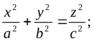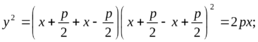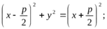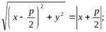 | 17. Прямая, заданная как пересечение 2х плоскостей (переход к параметрическим ур-ям). Пересечение прямой плоскостью. Условия параллельности и перпендикулярности прямой и плоскости. 1. Прямая как пересечение 2х плоскостей: Чтобы перейти к иной записи, выражаем какие-то 2 переменные через 3ю. Пример: 3x – 3z = 1; x = z+1/3; y = 1 – x + z=1-z - 1/3 +z = 2/3 Получили параметр. ур-е. 2. Пересечение прямой с плоскостью: П: Ax+By+Cz = D; L: l(α, β, γ), A0 (x0,y0,z0); n = (A,B,C) Существует удинств. решение, если n не перпенд. l: Aα+Bβ+Cγ ≠ 0; Для решения задачи надо найди такое t, чтобы точки с указ. координатами удовлетворяли ур-ю прямой и плоскости. A(x0+αt)+B(y0+βt)+C(z0+γt)=D; Подставив найденное t в ур-е плос-ти получим точку пересечения прямой с плоскостью. 3. Условия параллельности прямой и плоскости: П || L => n (A,B,C) перпенд. l(α,β,γ): Aα+Bβ+Cγ=0 4. Условия перпендикулярности: n || l; n = λl; n x l=0. 5. Пучок плоскостей. Совокупность плоскостей, проходящ. через данную точку. Ур-е целого пучка: A0 (x0,y0,z0) A(x-x0)+B(y-y0)+C(z-z0)=0; (A2+B2 +C2≠ 0) | 18. Эллипс. Вывод уравнения. Эллипсом называется множество точек плоскости, сумма расстояний которых до 2х фиксированных точек есть постоянное. Указанные 2 точки – фокусы эллипса. а – полуось вдоль оси ОХ, b – полуось вдоль OY. с = ½ |F1F2|; c2=a2-b2 при a>b, ε = c/a c2= b2 - a2 при b>a, ε = c/b. |MF1|+|MF2|=2a; a>c; M(x,y); F1 (-c, 0); F2 (0, c) Вывод канонического ур-я: Свойства уравнения эллипса: 1) т.е. эллипс лежит внутри прям-ка, определяемыми этими нерав-вами. 2) Т.к. ур-е эллипса содержит только квадраты текущих координат, то если точка (x,y) принад. эллипсу, то и точки (x,-y), (-x,y), (-x,-y) принадлежат эллипсу. Следовательно, эллипс имеет 2 оси симметрии – оси координат. 3) Точки пересечения эллипса с осями координат. При y=0, x= ±a; при x=0 и y= ±b. Точки A1(-a,0), A2(a,0), B1 (0,b), B2 (0,-b) – называются вершинами эллипса. Отрезки A1A2 и B1B2 , а также их длины 2a и 2b называют большой и малой осями эллипса. 4) Форма эллипса характеризуется отношением половины расстояния между фокусами к его большей полуоси. Это отношение называется эксцентриситетом эллипса и обозначается ε. т.к. 0<c<a, то 0<ε<1. | 19. Гипербола. Вывод уравнения. Гиперболой называется множество точек на плоскости, модуль разности от которых до двух данных точек, называемых фокусами, есть величина постоянная. или а – полуось вдоль оси ОХ, b – полуось вдоль OY. с = ½ |F1F2|; c2=a2+b2; ε= c/a (при 1); ε = c/b (при -1). |MF1|-|MF2|=2a; a<c; M(x,y); F1 (-c, 0); F2 (0, c) Вывод канонического уравнения: Свойства уравнения гиперболы: 1) Т.к. ур-е гиперболы содержит только квадраты текущих координат, то если точка (x,y) принад. гиперболе, то и точки (x,-y), (-x,y), (-x,-y) принадлежат гиперболе. Следовательно, гипербола имеет 2 оси симметрии – оси координат. 2) Точки пересечения гиперболы с осями координат. При y=0, x= ±a; при x=0 гипербола не имеет точек пересечения. Точки A1(-a,0), A2(a,0) – называются вершинами гиперболы. Отрезок A1A2 называется действительной осью гиперболы. B1B2 – мнимая ось гиперболы. 3) т.е. все точки гиперболы лежат вне полосы x=±a, и гипербола состоит из 2х отдельных ветвей. 4) Прямые y = ±(b/a) – асимптоты гиперболы. 5) Эксцентриситет гиперболы ε: т.к. a<c, то ε>1. | 20. Парабола. Вывод уравнения. Параболой называется множество всех точек на плоскости, равноотстоящих от данной точки, называемой фокусом, и данной прямой, называемой директрисой. y2=2px; y2=-2px; x2=2py; x2=-2py; p – расстояние от фокуса до директрисы. Вывод канонического уравнения: Свойства уравнения параболы: 1) Имеет одну ось симметрии. 2) Парабола лежит справ