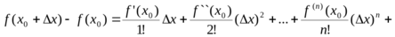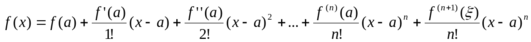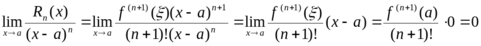 | Билет 15 2.Сформулировать теорему Тейлора. Записать формулу Тейлора с остаточным членом в форме Лагранжа и в форме Пеано Теорема Тейлора. Пусть функция f(x) имеет в некоторой окрестности конечной точки a производные до порядка (n+1) включительно, x – любое значение аргумента из указанной окрестности (x<>a) тогда между точками a и x найдется точка такая, что (5) многочлен Тейлора функции f(x) Формула (5) называется формулой Тейлора с остаточным членом в форме Лагранжа: ; , формула Тейлора с центром в точке a. Формулу Тейлора часто записывают в другом виде. Положим . , отсюда при n=0 получается формула Лагранжа . Таким образом формула Тейлора обобщает формулу Лагранжа. Покажем, что если функция ограничена в окрестности точки a, то остаточный член формулы Тейлора есть БМ более высокого малости, чем (x-a)n при xa т.о. ; (при x a) (6). Ч.т.д. Остаточный член (6) называется остаточным членом в форме Пеано, а формула Тейлора с остаточным членом в форме Пеано называется локальной формулы Тейлора. | |