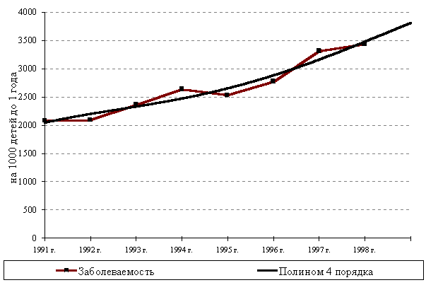 Рисунок 6.3. Динамика показателей заболеваемости детей в возрасте до 1 года в Оренбурге.
