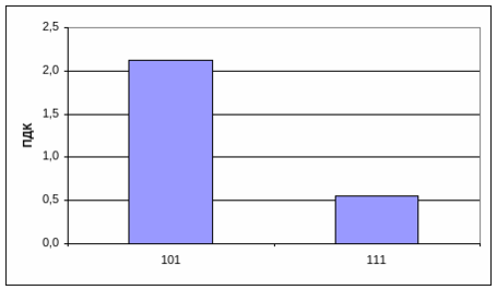 Загрязнения подземных вод нитритами и аммиаком не обнаружено. Устойчивое загрязнение нитратами фиксируется по наблюдательным скважинам 101 (2,1 ПДК), 111 (0,55 ПДК) (в 2004 году 1,9 ПДК и 0,49 ПДК соответственно).