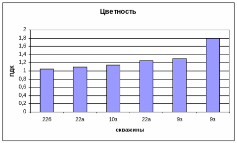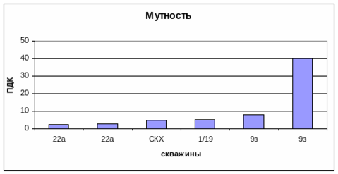 Диаграмма 7 Значение цветности и мутности в подземной воде. Скважины ВНИИЭФ
