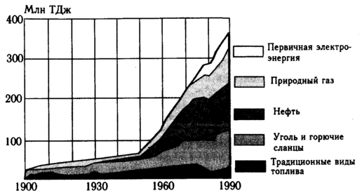 Рис. 5.5. Мировое потребление энергии (Медоуз и др., 1992)