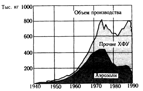 Рис. 6.5. Мировое производство хлорфторуглеродов
