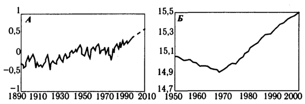 Б - глобальная тенденция средней температуры во второй половине столетия
