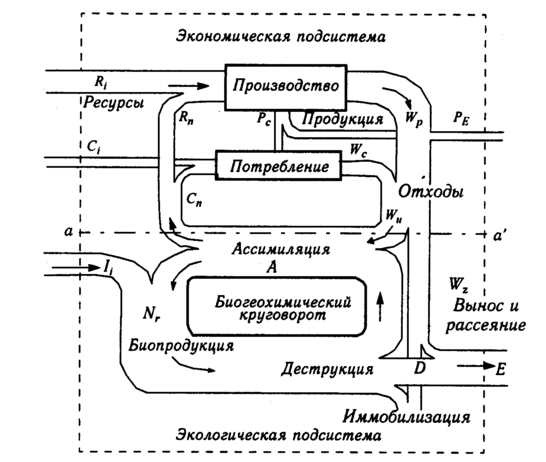 Рис. 8.1. Схема основных материальных потоков в эколого-экономической системе