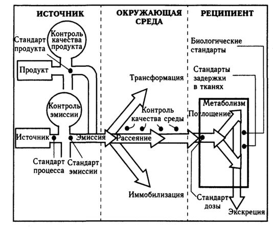Рис. 8.6. Схема пути загрязнителя с указанием пунктов стандартизации и контроля