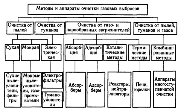 Рис. 10.5. Классификация методов и аппаратов для очистки промышленных выбросов
