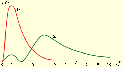(http://www.college.ru/enportal/physics/content/chapter9/section/paragraph3/theory.html) показана внутренняя структура 1s и 2s- орбиталей. Как видно из рисунка, 2s-орбиталь подобна «двухслойной луковице» с внутренними оболочками, расположенными на расстоянии 1 и 4 радиуса боровской орбиты. Как правило, в химии факт сложности внутреннего строения орбиталей не играет значительной роли.