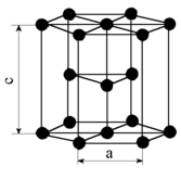 Для ячейки ГПУ, учитывая ее геометрию, можно записать соотношения между объёмом элементарной ячейки V, параметром решетки а, массой ячейки m, плотностью кристалла , молярной массой формульной единицы M, числом формульных единиц Z и числом Авогадро NA:
