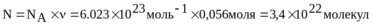 203. Вода при температуре t=4°C занимает объем V = 1 см3. Определить количество вещества ν и число N молекул воды.
