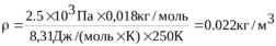 220. Определить плотность ρ водяного пара, находящегося под давлением P = 2,5кПа и имеющего температуру Т =250 К.