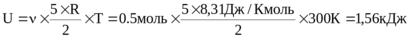 221. Определить внутреннюю энергию U водорода, а также среднюю кинетическую энергию <ε> молекулы этого газа при температуре T= 300 К, если количество вещества ν этого газа равно 0,5 моль.
