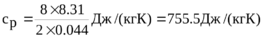 232. Найти удельные ср и сv, а также молярные Ср и Сv теплоемкости углекислого газа.