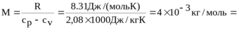 235. Определить относительную молекулярную массу Mr и молярную массу газа M, если разность его удельных теплоемкостей ср –сv = 2,08 кДж/(кг× К).