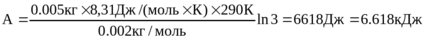 258. Какая работа А совершается при изотермическом расширении водорода массой m= 5г, взятого при температуре Т= 290 К, если объем газа увеличивается в три раза?