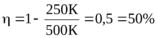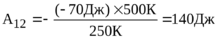 268. Идеальная тепловая машина работает по циклу Карно. Температура теплоотдатчика Т1=500 К, температура теплоприемника T2 = 250К. Определить термически КПД η цикла, а также работу А12 рабочего вещества при изотермическом расширении, если при изотермическом сжатии совершена работа A34 = 70 Дж.