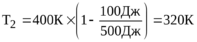 270. В цикле Карно газ получил от теплоотдатчика теплоту Q1 = 500Дж и совершил работу A=100Дж. Температура теплоотдатчика T1=400K. Определить температуру T2 теплоприемника.