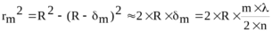 , где n– показатель преломления воздуха (n=1), δm – расстояние между линзой и плоскостью для m-го кольца (см. рисунок). Для того чтобы кольцо было темным необходимо, чтобы Δ=