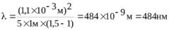 508. Плосковыпуклая стеклянная линза с F = 1 м лежит выпуклой стороной на стеклянной пластинке. Радиус пятого темного кольца Ньютона в отраженном свете r5=1,1мм. Определить длину световой волны λ.