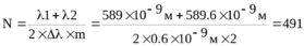 511. Какое наименьшее число N штрихов должна содержать дифракционная решетка, чтобы в спектре второго порядка можно было видеть раздельно две желтые линии натрия с длинами волн λ1 = 589,0 нм и λ2 = 589,6 нм? Какова длина L такой решетки, если постоянная решетки d = 5 мкм?