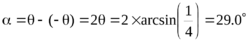 519. Постоянная дифракционной решетки в n = 4 раза больше длины световой волны монохроматического света, нормально падающего на ее поверхность. Определить угол α между двумя первыми симметричными дифракционными максимумами.