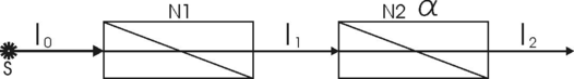 | α = 40º k = 0.15 | При прохождении через первый николь (если свет естественный) получаем: |