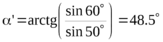 529. Пучок света переходит из жидкости в стекло. Угол падения α пучка равен 60°, угол преломления β = 50°. При каком угле падения α’ пучок света, отраженный от границы раздела этих сред, будет максимально поляризован?