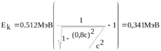 | V = 0.8c E0=0,512МэВ | Кинетическая энергия релятивистской частицы |
