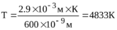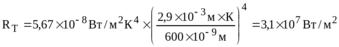 544. Определить температуру Т и энергетическую светимость (излучательность) RT абсолютно черного тела, если максимум энергии излучения приходится на длину волны λ=600 нм.