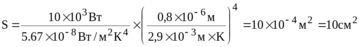 546. Поток излучения абсолютно черного тела P = 10 кВт. Максимум энергии излучения приходится на длину волны λ=0,8 мкм. Определить площадь S излучающей поверхности.