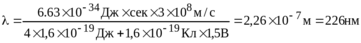 560. На цинковую пластину направлен монохроматический пучок света. Фототок прекращается при задерживающей разности потенциалов U= 1,5 В. Определить длину волны λ света, падающего на пластину.