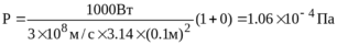 580. Точечный источник монохроматического (λ = 1 нм) излучения находится в центре сферической зачерненной колбы радиусом R = 10 см. Определить световое давление P, производимое на внутреннюю поверхность колбы, если мощность источника W = 1 кВт.