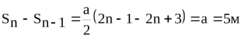 102. Материальная точка движется прямолинейно с ускорением а = 5м/с2. Определить, на сколько путь, пройденный точкой в n-ю секунду, будет больше пути, пройденного в предыдущую секунду. Принять V0= 0.