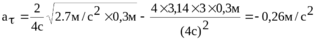 110. Точка движется по окружности радиусом R = 30 см с постоянным угловым ускорением ε. Определить тангенциальное ускорение аτ точки, если известно, что за время T = 4 с она совершила три оборота и в конце третьего оборота ее нормальное ускорение аn=2,7 м/с2.